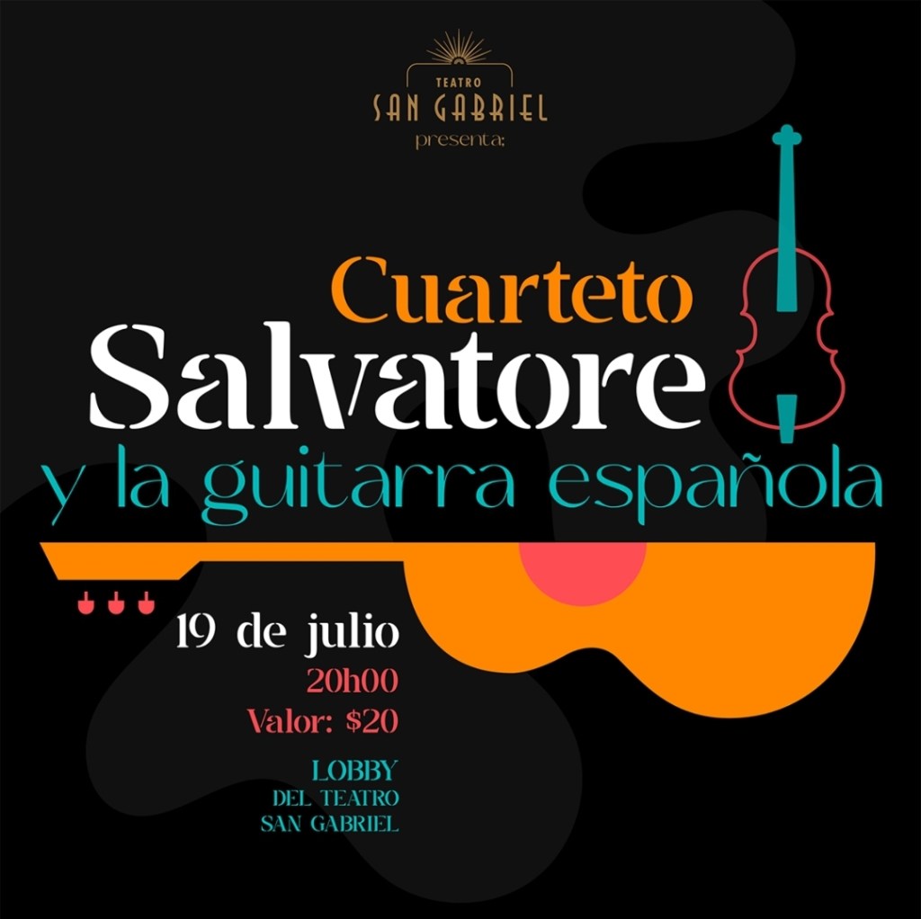Salvatore Strings y el guitarrista quiteño Álvaro Durango presentan su concierto el martes 19 de julio de 2022 en el Lobby del Teatro San Gabriel a las 20h00.